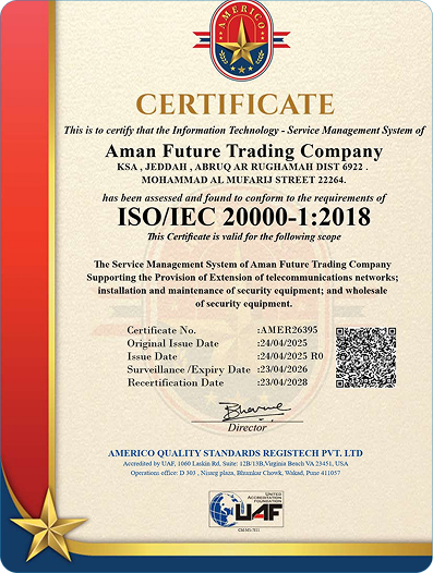 والصيانة لتشغيل سلس نظمة امان والاتصالات. لذا، نقدم خدمات ً ما بعد البيع الشاملة ونوفر ضمانا لمدة سنتين على منتجاتنا